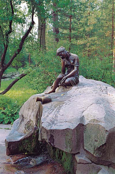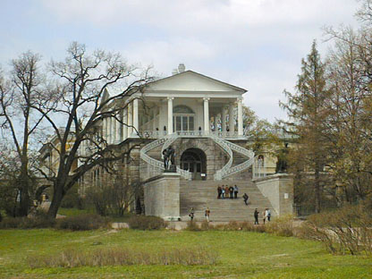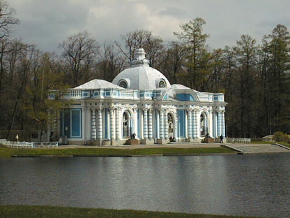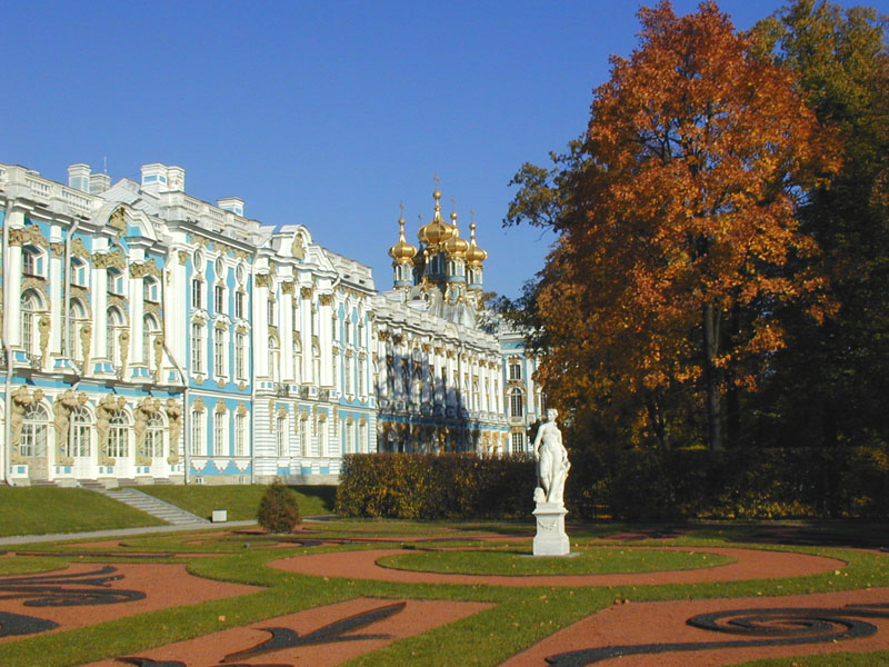 Afueras de San Petersburgo: La residencia veraniega en Pushkin o Tsarskoye Selo. (Palacio de Catalina y parque). Sin duda, es un monumento absolutamente fascinador de arquitectura y de jardinería del s XVIII. Historia de la residencia: En 1710 Pedro el Grande regaló a su esposa Catalina I la zona donde en pocos ańos se construyó el maravilloso conjunto de parques y palacios, cuyo centro composicional es el Palacio de Catalina. El palacio se alzó en la epoca de la hija de Pedro I , la emperatriz Isabel, sobre una construcción previa propiedad de la madre de Isabel, encargándose del proyecto Bartolomeo Rastrelli en un estilo plenamente barroco, participando posteriormente C.Cameron y G. Quarenghi . El edificio se articula en varios edificios, el mayor de los cuales tiene una longitud de 340 m. Sus fachadas están decoradas con profusión de atlantes, columnas y grandes ventanales ornamentales, para los que se recurrió al ya característico contraste de colores del barroco ruso: azul, blanco, dorado...... Es un palacio diferente al lo que se esta acostumbrado a ver en la Europa Occidental, quizás demasiado recargado, pero que no deja de ser espectacular en todos los sentidos. Es sin nungun tipo de duda uno de los principales exponentes del estilo barroco en Europa. La decoración de los interiores pasmaba por su magnificencia: las puertas lucían sutil veteado dorado, la enfilada de habitaciones daba sensación de estar adornada con encajes brillantes. Entre las estancias del palacio destaca el gran Salón Dorado o Salón del Trono que es obra de Rastrelli. La visita a este salón puede abrumar al mas escéptico por la profusión de dorados que están presentes en cada minúsculo detalle de esta estancia, y que se multiplican hasta el infinito por la multitud de espejos. En el techo podemos ver el fabuloso plafon de Giuseppe Valeriani "El triunfo de Rusia" de 1755. Otras estancias son: las Anticamaras, el comedor de caballeros, el comedor de cazadores, el salon de pilastras rojas de cristal, la famosisima sala de ambar, la Pinacoteca, el comedor verde de Cámeron, y de época mas tardía el despacho de Alejandro I y la escalera principal. Durante siglos este palacio fue la residencia oficial de los zares en verano, y fue aquí donde el último zar Nicolás II vivió arrestado hasta poco antes de su ejecución No es sorprendente que la Sala de Ambar del Palacio de Catalina sea considerada la Octava Maravilla del Mundo - imaginense la habitacion completa, cubierta de paneles de ambar, brillantes y reflejando la luz del sol. El rey aleman Friedrich Wilhelm I de Prusia obsequio la habitacion como un regalo diplomatico al zar Pedro el Grande, en 1717, despues de que Pedro el Grande la hubiese admirado siendo huesped en Charlottenburg, Berlin. Primeramente la habitacion fue instalada en el Palacio de Invierno, pero en 1755 la Emperatriz Isabel (Elizabeth) ordeno trasladarla al Palacio de Catalina en Tsarskoye Selo. Los paneles individuales de Ambar fueron traidos desde San Petersburgo a Tsarskoye Selo por 76 soldados a cuestas durante 6 dias. No habia suficientes paneles para decorar toda la superficie de 100 metros del nuevo interior, por eso los mosaicos y los espejos fueron anadidos y la parte inferior de la sala fue pintada imitando el ambar. Durante la Segunda Guerra Mundial las tropas nazis se llevaron los paneles de Ambar y los trajeron a Alfredo Rode, el jefe del Museo de Artes de Konigsberg en Kaliningrado. Una parte de la Sala de Ambar se ha visto por ultima vez en la exposicion del Castillo de Konigsberg, antes de ser ocultada en las catacumbas. Desde aqui empieza la leyenda. Existen muchas leyendas e historias sobre la suerte de la Sala de Ambar, pero parece mas real el hecho que los paneles fueron escondidos en una de las minas de la Costa Baltica o que se quemaron . Un equipo de maestros de ambar de "Tsarskoselskaya Yantarnaya Masterskaya" ha trabajado desde 1972, para recuperar la magnifica Sala de Ambar. Los maestros han estudiado y usado los antiguos metodos de trabajo en ambar. Su idea era no solo recuperar los paneles, sino tambien encontrar y repetir la manera original de los autores de la sala. Mientras que su misteriosa desaparición durante la Segunda Guerra Mundial sigue excitando a los cazadores de tesoros de todo el mundo, la Cámara de Ambar ya ha recobrado su antigua grandeza y esplendor gracias al trabajo de los restauradores contemporáneos, fue inaugurada en verano 2003 cuando San Petersburgo celebraba su 300 aniversario , al que asistieron grandes personalidades de todo el mundo. En la actualidad este palacio sigue en reconstrucción, por lo que cada día se abren nuevas estancias al público que merecen ser visitadas. Parque de Catalina. Un paseo por las avenidas sombreadas entre los pequeños y bonitos pabellones del Parque de Catalina es ideal para quién busca tranquilidad y paz de espíritu. Un rasgo interesante del Parque es que consiste en dos partes, cada una con su propio estilo: el Parque Francés (arquitectónico) distinguido por el diseño geométrico de sus anchos paseos y el Parque Inglés que se caracteriza por un decorativismo que imita la naturaleza.