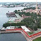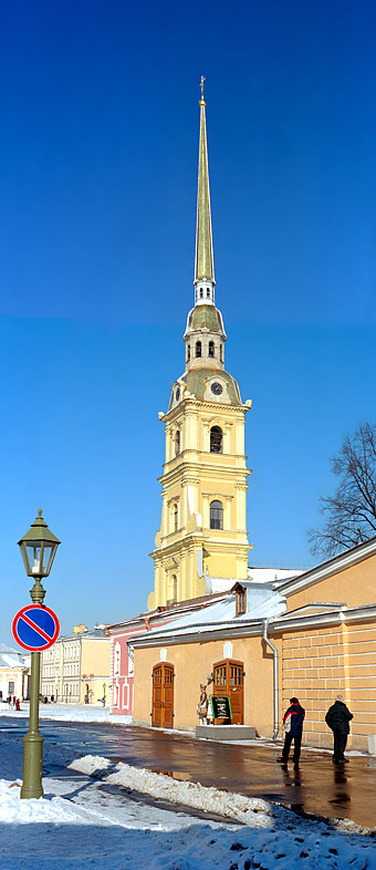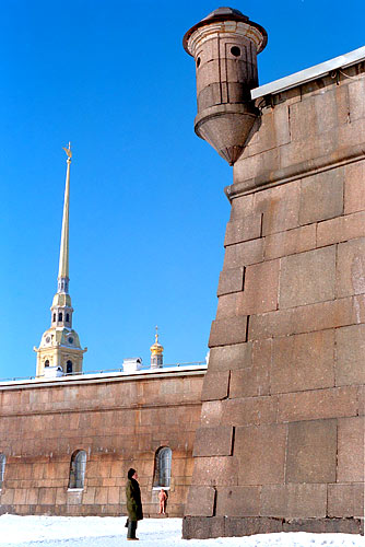 La Fortaleza de San Pedro y San Pablo, el auténtico núcleo antiguo de la ciudad. Fue la primera edificación que mandó construir según su propio diseño Pedro el Grande sobre una pequeña isla pantanosa situada entre el Gran Neva y el canal de Kronwerk. La fortaleza, que ahora se considera la mejor fortificación militar del siglo XVIII conservada de Europa, fue proyectada para defender la salida al mar Báltico. Siendo la primera y única construcción de piedra en la ciudad en los primeros 15 años de la existencia de San Petersburgo, no es de extrañar que fuera donde construyeron la primera Catedral de la recién nacida capital del Imperio ruso a la que (como a la misma ciudad) pusieron el nombre del santo protector de su fundador: la Catedral de San Pedro y San Pablo, el brillante monumento de la arquitectura y arte ruso de la primera mitad del siglo XVIII, la más antigua y hasta hoy en día la más alta de la ciudad. La aguja de su campanario (122 m.) esta coronada con una veleta en forma de Ángel protegiendo la cuidad. Se considera uno de los símbolos de la cuidad y se cree que mientras esté en su lugar ningún enemigo podrá vencerla. Pedro el Grande pidió en testamento ser enterrado en la Catedral de San Pedro y San Pablo y, al cumplir su voluntad en el 1725, todos sus descendientes en el trono ruso encontraron la paz eterna bajo su amparo. En 1998 en la catedral fueron enterrados Nicolás II con su familia, todos fusilados por los bolcheviques en Ekaterinburgo en el 1918. Las majestuosas columnas del interior de la Catedral, las arañas de cristal y la decoración pintada, en combinación con el iconostasio tallado y sobredorado crean un escenario magnífico que acoge las tumbas de los monarcas de la dinastía de los Romanov. Cuando la fortaleza ya perdió su importancia militar, una parte se convirtió en la cárcel política, en la que fueron encerrados varios adversarios del régimen, conspiradores políticos, como el propio hijo del zar Pedro, el zarevich Alexei, los decembristas, el hermano mayor de Lenin Alejandro que había atentado contra la vida del zar Alejandro III, los escritores Dostoevskiy y Gorkiy, los ministros del gobierno provisional burgués, los miembros de la familia Romanov después de la revolución comunista (octubre 1917). Informe: Pedro I fue zar de Rusia entre 1682 y 1725. Sus campañas militares y esfuerzos de modernización en 25 años convirtieron a Rusia de un país rural y atrasado en un imperio con amplia presencia en los asuntos europeos. Nació en Moscú, el 9 de junio de 1672. Su educación incluyó es estudio de las artes técnicas y mecánicas, pero también las ciencias militares y navales. Durante su reinado Rusia se convirtió en una gran potencia europea, en parte debido a la introducción de muchas ideas y prácticas científicas, tecnológicas, culturales y políticas de la Europa occidental. En 1696, después de crear la primera flota rusa, Pedro arrebató a los turcos la fortaleza de Azov y de esa manera logró que Rusia accediera al Mar Negro. Era un hombre que viajaba y le gustaba presentarse en las cortes europeas y en estos viajes, Pedro persuadía a artesanos, artistas, consejeros y otros expertos para que viajaran a Rusia y así se rodeó de gente cualificada. En 1703, durante la guerra contra Suecia, Pedro reconquistó la costa del mar Báltico, fundó San Petesburgo y la convirtió en la capital de Rusia. Durante su reinado llevó a cabo muchas reformas politicas y administrativas dirigidas a iluminar a sus súbditos, se limitó el poder de la Iglesia, se sustituyó el alfabeto eslavo antiguo por el moderno, se publicó el primer periódico ruso , se fundaron escuelas y la Academia de Ciencias, y también se inauguró el primer museo. En San Petersburgo hay muchos monumentos dedicados a Pedro I, siendo el más famoso el tal llamado “Jinete de Cobre” en la orilla del Nevá, y parece que hasta hoy en día en San Petersburgo continúa la tradición de dedicar al fundador los monumentos escultóricos: en el territorio de la fortaleza se puede ver el discutible pero popular monumento a Pedro I hecho en 1992 por el escultor y pintor ruso Miguel Shemiakin, que ahora vive en los Estados Unidos. A mucha gente no le agrada la imagen tan deformada del famoso emperador No se conservan las proporciones. Aunque la estatura de la figura corresponde a la realidad. Es cierto que Pedro I era muy alto (2 m. 04 cm.).